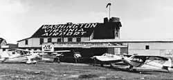 The airport featured two graveled runways, a north–south runway measuring 2,200 feet and a second, longer runway that ran east–west and measured 2,800 feet. During the late 1940s, the Benn brothers opened a flight school that included 10 Piper J-3 Cubs, two Cessna 120s, a Cessna 140, a Fairchild PT-19 and a Cessna UC-78 Bobcat in its inventory. The airport also had multiple hangars and administrative offices.[1] By 1949, the airport was considered as one of the busiest general aviation airports in the Washington D.C. metropolitan area and attracted a number of airshows and events.[7][8][9]