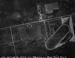 In 1926, a second Washington Park Race Track opened up in south suburban Homewood.[2] The new Washington Park Race Track was located west of Halsted Street just outside Homewood village bounds. The Illinois Central Railroad built a spur line from its mainline at Harvey to the newly relocated race track.[11] The relocated track continued to be a famous and popular attraction.[12] The inaugural meeting of organizers was July 3, 1926.[13] The new track was developed during a construction boom of racetracks in the United States during the 1920s, which included fifteen new large racetracks built during the decade. Others constructed at this time were Arlington Park nearby in Chicago and Hialeah Park in Florida.[14]