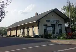 The brick station was designed for the Missouri Pacific Railroad by the railroad's Chief Engineer E. M. Tucker and built in 1923.[2] The wooden depot built in 1865 which it replaced was moved and became the Missouri Pacific freight station. Both stations still stand.