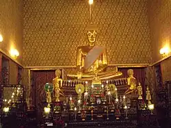 The principal Buddha statue of the temple is Buddha statue in Māravijaya posture namely "Phra Sam Phuttha Bophit" (พระสัมพุทธบพิตร) enshrined within the main hall.[4]