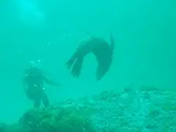 More turbid water with lower visibility near Castle Rocks, South Africa.