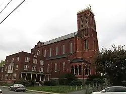 In September 2011, the Roman Catholic Diocese of Albany decided to close St. Patrick's Roman Catholic Church, citing physical deterioration of the building. The parish was merged with Immaculate Heart of Mary Parish, and was unable to afford the estimated $4 million cost to rehabilitate the building.[14] Built in 1889,[15] St. Patrick's Church was the tallest point in the city.[16] The church was closely modeled on the Upper Basilica in Lourdes, and many Watervliet residents considered it a defining piece and landmark of the city's architecture.[17]