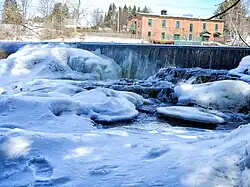 • 4.1 kilometres (2.5 mi) towards the southwest, collecting the Péloquin stream, passing around Île Rouillard, crossing the La Poudrière dam, crossing the Poudrière rapids and the Watopeka dam, through the southern part of the city of Windsor.[2]