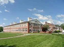 In 1966, an English Building (later the Math-English Building) was built behind the Math-Science Building at the rear of the campus. This was followed six years later, in 1972, by the construction of an Administration/Media Center building in the front of the school, with renovations to areas in the Commons and Arts Buildings previously occupied by the administration and library spaces now relocated to the new building.[8]