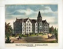 Waynesburg University is a private Christian university in Waynesburg, Pennsylvania, United States. It was established in 1850 and offers undergraduate and graduate programs in more than 70 academic concentrations. The university enrolls around 1,400 students, including approximately 1,100 undergraduates.[1]