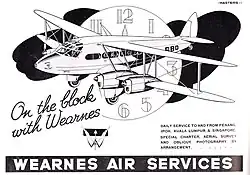 15. ^ a b "Wearne's Air Service Lost $78,000 Last Year, But Transport Will Carry On", Sunday Tribune (Singapore), 1938-12-18, retrieved 2024-01-25