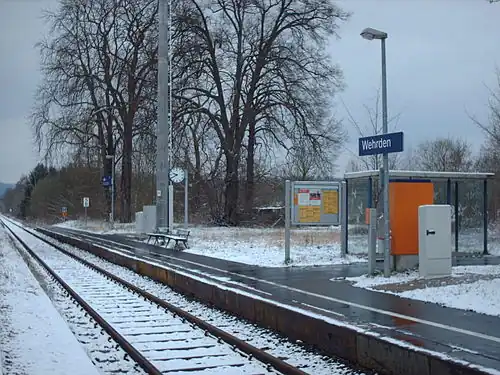 Wehrden is a railway station located in Wehrden, Germany. The station is located on the Sollingbahn and the train services are operated by NordWestBahn.