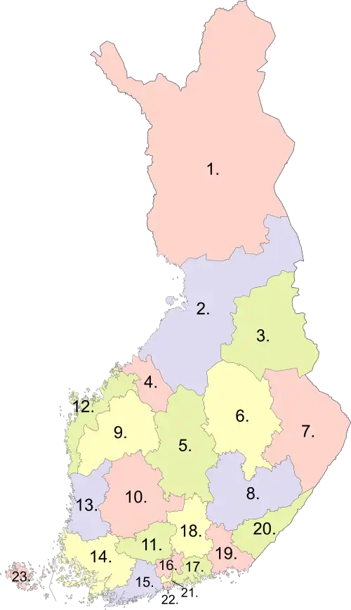 - ^ a b c d e "Wellbeing services counties will be responsible for organising health, social and rescue services on 1 January 2023". Ministry of Social Affairs and Health. Archived from the original on 2023-09-07. Retrieved 2023-09-07.