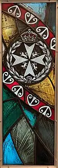 A notable feature of the building was the stained-glass windows in the north wall designed by Beverley Shore Bennett and Martin Roestenburg.[50]: 42  In 1965 when the chapel opened the 72 windows were filled with coloured glass but by 2001 this was replaced in 51 windows by stained-glass designs.[50]: 41–42  The subjects of and depictions in the windows were varied: saints and apostles, Saint Fabiola, Florence Nightingale's lamp, the New Zealand Registered Nurses (NZRN) badge, the staff and snake of Asclepius, the original hospital at Pipitea St, the 1981 centennial of the hospital, the centenary of the School of Nursing in 1983, and the St John Ambulance which incorporated Māori kowhaiwhai pattern and the mangopare (hammerhead shark) motif. Many of the windows were dedicated to former staff of the hospital.[50]: 44–58