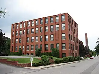 The Wellington Piano Case Company was founded in 1895 by Frank E. Wellington, who had risen through the ranks of other piano case manufacturers in Leominster. The main block, built in 1895, was lauded into the 1930s as one of the city's finest and most modern factory facilities. The southern addition was made in 1906, and was originally six stories in height; the top floor was damaged in the New England Hurricane of 1938 and removed. The northern addition, originally used as a dry kiln, was made in 1919. Wellington's company was the last piano case maker to be established in the city.[2] His company was later acquired by the Cable Piano Company.[3] The building, after standing vacant for some years, was converted into condominium residences in 2002.