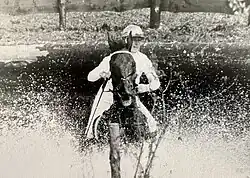 Wendy Dell and High Wind at a water cross-country obstacle at the 1971 Pan American Games in Cali Colombia