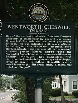 13. ^ "Roadside History: Wentworth Cheswill (1746-1817), 'New Hampshire's first historian'". New Hampshire Union Leader. 4 June 2017. Retrieved 9 July 2019.