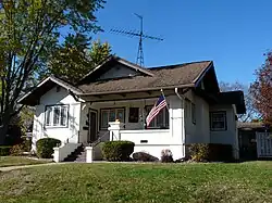 • The Sundet house at 524 W Central St is a 1.5-story bungalow with Prairie Style elements, built in 1915 yet very intact. The house has a complex roof, stucco-clad walls with abstracted pilasters at the front corners, and an open front porch. Prairie elements are the broad eaves that emphasize the horizontal and the banded windows. Christopher and Helena Sundet immigrated from Norway in the 1880s. He owned a music store at 318 N. Bridge St that "sold pianos, musical merchandise, and 'talking machines'."[2][12]