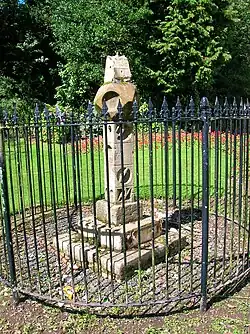West Kilbride is generally believed to be named after the ancient Celtic Saint Brigid of Kildare, often known as St Bride.[6] The name suggests there was once a cell or kil to Brigid in the area, although local legend has her visit to establish her church around 500 AD (the landing point was supposedly in front of the now Seamill Hydro). The "West" prefix was added in the early 18th century[7] to distinguish between another Kilbride in South Lanarkshire.[8] There has been a hamlet in the area since 82 AD when the Roman general Agricola stationed 30,000 troops in the area of the village now known as Gateside. Roman roads can still be explored around the village to this day, and many Roman finds have been reported and lodged in Museums throughout Scotland. William Wallace's uncle Crauford had an estate at Corsbie in the North of the village, and this is still in use as a caravan park called Crosby, to this day (Wallace's mother's family). In later years Robert the Bruce gave a grant of the lands of the Barony of Kilbride to the Boyds of Kilmarnock.[9] It was once home to various mills and other works,[10] and in the 18th century West Kilbride was primarily a weaving village.