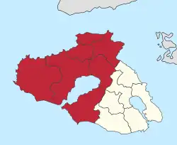 West Lesbos (Greek: Δυτική Λέσβος, romanized: Dytiki Lesvos), sometimes also referred to as West Lesvos, is a municipality on the island of Lesbos in the North Aegean region in Greece. The municipality was formed from a decision by the Ministry of the Interior, published on 9 March 2019, which divided the pre-existing municipality of Lesbos.[3] The seat of the municipality is in Kalloni.[3]