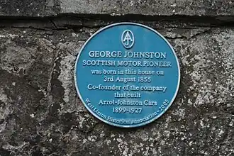 George Johnston, owner of the first motorcar in Scotland and founder of the Arrol-Johnston automotive works was born in West Linton in 1855.[13]