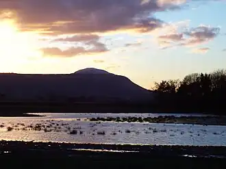 West Lomond is the highest point in the county of Fife, Scotland and the highest peak in the Lomond Hills. Its cone-shaped summit, which is the remains of a volcanic plug, rises above an escarpment of Carboniferous sandstone and limestone layers, capped with a quartz-microgabbro sill.[1] The conspicuous peaks of West Lomond, and its neighbour East Lomond, are visible for many miles around, which explains one suggested origin of their name, the 'Lomond' or 'beacon' hills. On the summit are the remains of an Iron Age hill fort.