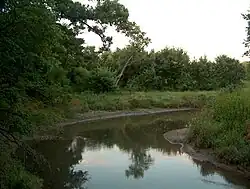 The West Okaw is about 32 miles (51 km) in length,[3] as measured from the junction of the arms of Lake Shelbyville. This figure includes the drainage ditches, which extend the stream about eight miles above the natural channel.