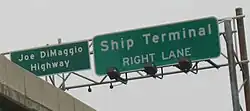 Joe DiMaggio Highway sign on the elevated portion of the highway