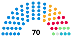 Since the last boundary changes in 2017 the county has been divided into 70 electoral divisions, each electing one councillor. Elections are held every four years.[28]