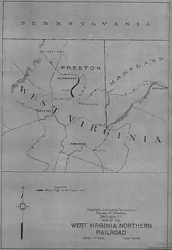 The West Virginia Northern Railroad (WVN) was a short line railroad that ran from Kingwood to Tunnelton in Preston County, West Virginia. It operated from 1886 to 1991.