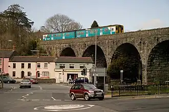![]() A British Rail Class 150 crosses the viaduct near Tenby railway station. | |||