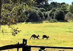 The park's main recreational points include Pimelea, Sugarloaf Ridge, The Dairy and Plough and Harrow picnic areas, all of which have shelters, playgrounds and free barbeques, in addition to large parking spaces. There exists a walking track called the Spotted Gum Trail, which is 3 km in length, that loops around Plough and Harrow within the native bushland, thereby allowing walkers to encounter kangaroos and wallabies, in addition to birdwatching.[12] Every entrance to the recreation spots contains prominent planting accompanied by a large signage to indicate access. Access to the park is through Cowpasture Road, Elizabeth Drive and The Horsley Drive.[4]