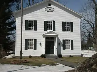 Western Town Hall, also known as Liberty Hall, is a historic town hall building located at Westernville in Oneida County, New York. It was built in 1911 and is a two-story, gable roofed timber frame structure. It was constructed from dismantled components of the ca. 1850 Empire Hotel in Delta. It was rebuilt as "Liberty Hall," a social gathering hall, and named in honor of General William Floyd. The second floor has an auditorium. It has been used as the town hall since 1962.[2]
