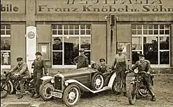 Westfalia traces its founding back to Johann Bernard Knöbel, who opened a blacksmith shop in Wiedenbrück on October 1, 1844.[1] The blacksmith shop was passed on to Knöbel two sons Wilhelm and Franz. Wilhelm and Franz added wagon and saddlery products to the business. Near the end of World War I, the two brothers ended their blacksmith partnership. Franz Knöbel changed the blacksmith shop to the manufacture of hunting wagons and horse-drawn sleighs, founding Franz Knobel & Sohn GmbH. In 1918, the company built a self-propelled carriage. In 1922, Franz Knöbel called his new company Westfalia, Fahrzeugfabrik Westfalia (Vehicle factory Westfalia). In the 1920s he start making a line of automobile products, including trailers, truck body, coachbuilding and taxi cab conversions.[4] Before 1932, trailers used only jaw or hook couplings with an eyelet for trailer towing. In 1932, Franz Knöbel developed the trailer hitch with a ball head and socket joint. Franz Knöbel patented the ball head-socket joint trailer hitch invention on March 14, 1934. Westfalia hold a number of towing patents.[5][3][6]