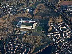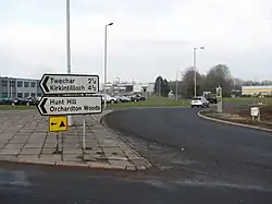 Westfield is an area of the town of Cumbernauld in Scotland. Westfield is a popular residential area originally built by Cumbernauld Development Corporation in the late 1970s and early 1980s (construction began 1975).[2] It comprises a residential area and a large industrial estate.[3] Historically there was a farm at Westfield as shown on Roy's map of the Lowlands[4] and the 1st 25 inch Ordnance Survey Map of Scotland.[5] It is located near Condorrat and Broadwood Stadium, home of Clyde FC. Historically, there were two local primary schools, St Francis of Assisi Primary School and Westfield Primary School. St. Francis of Assisi Primary School closed in 2009. The site has been re-developed by North Lanarkshire Council with new, high quality social housing available to rent. The new street is named Netherinch Way. Westfield also has other modern, private developments for example a new Bellway Housing development sits near Broadwood stadium along with a neighboring housing development. Westfield has a selection of frequent bus services to Airdrie, Cumbernauld Town Centre, Glasgow, Kilsyth and Kirkintilloch with buses operated by David Allan Coaches, First Group & McGills. In 2017 plans for a new retail park near Broadwood Studium were approved.[6]