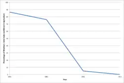 Historical statistics from the 1881 occupational data demonstrate the importance of agriculture in Westley during the 19th century. In 1881, 76%[19] (32 out of 40) of Westley's total male workforce was in the Agriculture category compared to 0% (out of 46) in the 2011 census.[20]