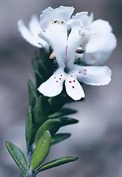 Westringia kydrensis flower, showing the red dots on the lobes