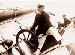 Charlie Barr, skipper of the Westward during a race circa 1910
