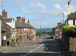The village lies on a small north-south ridge; immediately to the east is the edge of a plateau, and there are rock outcrops of millstone grit along the northern part of the ridgeline; the outcrops have restricted the growth of the village east of the A520. The name of the village comes from these rock outcrops, and from the nature of the pasture land (ley or lea being pasture). A local quarry, part of the same outcrop, provided the stone for many of the original buildings.[1][2]