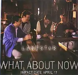 "What About Now" is a song recorded by American country music group Lonestar. It was released in April 2000 as the fourth single from their 1999 album Lonely Grill and it spent four weeks at the top of the Billboard Hot Country Singles & Tracks (now Hot Country Songs) chart. It was written by Ron Harbin, Aaron Barker and Anthony L. Smith.[2]