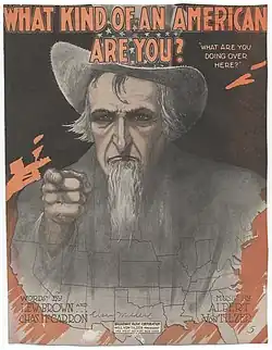 ![]() Sheet music cover of "What Kind of an American Are You?" | |