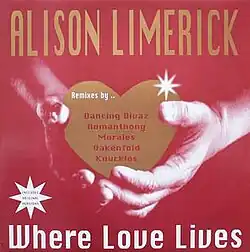 "Where Love Lives (Come On In)" is a song by British singer-songwriter and former dancer Alison Limerick, released first time in November 1990 by Arista Records as her solo-debut.[1] It was written and produced by Swedish producer Lati Kronlund, and received favorable reviews from music critics, becoming a massive club hit in the early 1990s in both the United Kingdom and United States. In 1991, the single peaked at number 27 on the UK Singles Chart and number three on the US Billboard Hot Dance Club Play chart. It was also voted Dance Track of 1991 by Billboard magazine.[2] In 1992, it was included on Limerick's debut album, And Still I Rise. In 1996, it was released in a new remix by Dancing Divaz, peaking at number nine in the UK and number four on the US dance chart. The song is famous for the funked-up piano intro and remains the singer's most successful release. It is now widely regarded as one of the biggest club anthems of all time, and has been remixed and re-released several times. In 2022 and 2025, Rolling Stone and Billboard included "Where Love Lives" in their lists of the greatest dance songs of all time.[3][4]