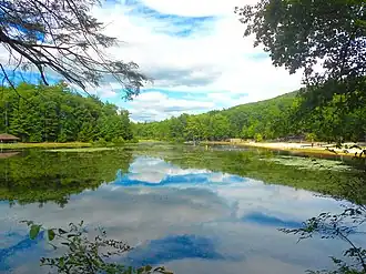 The dam was rebuilt in 1928 by the Department of Forests and Waters, a forerunner of the Pennsylvania Department of Conservation and Natural Resources. A camp for Boy Scouts, Girl Scouts, and Campfire Girls was built on the north side of the lake in 1928 and used until 1941.[1][4]
