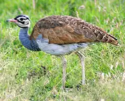 The white-bellied bustard or white-bellied korhaan (Eupodotis senegalensis) is an African species of bustard. It is widespread in sub-Saharan Africa in grassland and open woodland habitats.[3] Despite its wide distribution and easily identifiable characteristics, very few studies have been conducted on this species and little is known about its life history and behavior.
