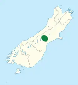 Distribution of Oligosoma hoparatea on a map of the South Island