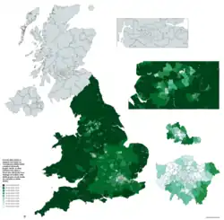 ![]() Geographic distribution of the White British in 2021 (in England and Wales) | |
