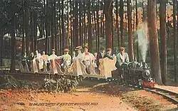 An early White City tagline was "Land of Fifty Thousand Electric Lights", which is sometimes cited as the source of the park's name, along with the white color of its structures. Most likely, though, the park was named for the famous White City at the 1893 Chicago World's Fair.[4] "White City" was a popular name for amusement parks of the time, being borne by parks in Springfield (Missouri), Atlanta, Chicago, Cleveland, Indianapolis, New Haven, New Orleans, Syracuse (New York), London, Sydney, Melbourne, and other places as well.
