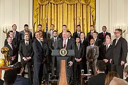 In January 2015, after winning the 2014 NBA Finals, Barack Obama welcomed the San Antonio Spurs to the White House