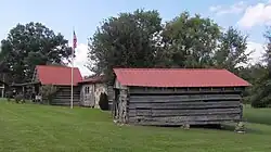 Smokehouse, now a log cabin (left) and corn crib (right) at White Plains