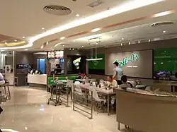 Abroad, White Spot has expanded its Triple O's chain into Hong Kong in the early 2000s, Manila in 2014,[13] and Mainland China.[14][15] In Hong Kong, four such stores can be found at the basement of Pacific Place, and in Exchange Square, on the Hong Kong Island; and at Cooked Deli in the Harbour City shopping mall in Kowloon and in Shatin. The three Hong Kong franchises each record more than twice as many sales as the average location in BC.[16]