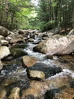 The Whiteface River, sharing a name with the 4,020-foot-high (1,230 m) Mount Whiteface, rises on the southern slopes of the Sandwich Range in the town of Waterville Valley. The headwaters collect tributaries from the area between Mt. Whiteface and Flat Mountain, as well as from The Sleepers, some broad peaks extending north towards Mount Tripyramid. Flowing south, the river enters the town of Sandwich and the Whiteface Intervale, a broad, flat valley at the base of the Sandwich Range. In the river's last mile, it leaves the Intervale and drops 200 feet (60 m) to end at the Cold River, just east of the village of Whiteface.