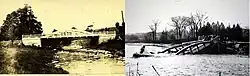 The Whitevale Bridge has suffered from at least three separate occasions of flooding. In 1929 a heavy flood completely washed out the newly built bridge. In October 1954, the mill dam and the approach to the Whitevale Bridge (not the entire bridge) went out due to Hurricane Hazel when Duffins Creek overflowed.[12] Finally, in July 2008 the concrete bridge suffered minor damage when heavy rains washed out a small section. The previous bridge was demolished in 2014 and replaced by the current structure.