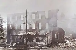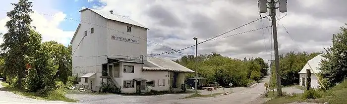 Fires destroyed many of Whitevale's booming industries and continually changed the face of town. A public hall which had been erected in 1860 was also lost due to fire. A carriage factory and the Cooperage went in 1874. The woolen mill was the next to experience a fire several years later, but the brick walls remained standing. This was later followed by the destruction of the planing mill and the Grist mill, which was then being operated by Mr. White himself. The planing mill was rebuilt on the site of the grist mill and subsequently burned in 1899. The grist mill machinery was rebuilt inside the fire-damaged brick walls of the old woolen mill.[3] A devastating fire leveled the converted grist mill in 1961, but a modern feed mill was erected on the same site in 1962.[4] In early 2011, the Regency Coffee Co. building (which includes a portion of the building that dates back to the 1880s) caught on fire during renovations, but only sustained smoke and roof damage.[11]