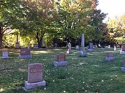 The final resting place of the hamlet's name sake Truman P. White,[9] as well as the headstones of the members of the Major family can also be found here. There are also two war graves: William Henry Emsely – a Lieutenant Colonel from World War I and Alfred Frederick Griffin – a Pilot Officer from World War II.[10]