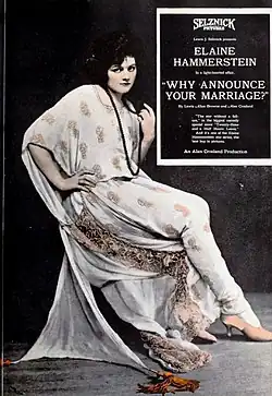 Why Announce Your Marriage? is a 1922 American silent comedy drama film directed by Alan Crosland and starring Elaine Hammerstein, Niles Welch and Arthur Housman.[1]